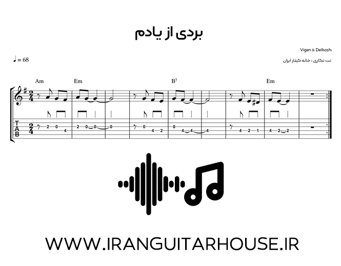 نت گیتار و تبلچر بارون بارونه ویگن + بکینگ ترک و آکورد